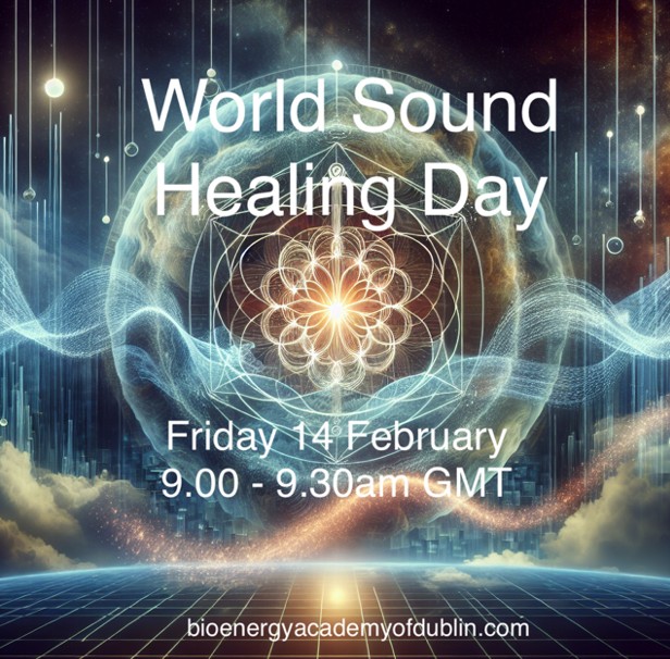 We invite you to join the Bio Energy Academy of Dublin live online for World Sound Healing Day on Friday, February 14th, from 9:00 AM – 9:30 AM (GMT).